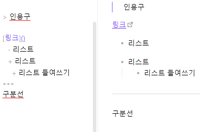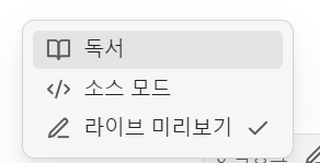 - 라이브 미리 보기: 작성 시 읽기 모드처럼 보여줌.
