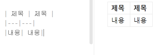 기본적인 테이블을 쓸 때 왼쪽 사진처럼 `|`를 사용해 구분해줘야 하며, 첫 번째 행은 제목, 두 번째 행은 표의 정렬을, 세 번째 행부터 내용을 씁니다. `---` 이렇게 쓴 부분에 `:---`를 한다면 왼쪽 정렬, `:---:` 가운데 정렬, `---:`오른쪽 정렬이며, 중간에 정렬을 바꿀 수 없습니다. 맨 오른쪽 사진처럼 옵시디언의 라이브 모드로 쓴다면 쉽게 표를 조절할 수 있습니다. 커서를 올리면 저렇게 추가할 수 있도록 나오며, 커뮤니티 플러그인에서 `advanced table`을 깔면 정렬도 쉽게 할 수 있습니다.