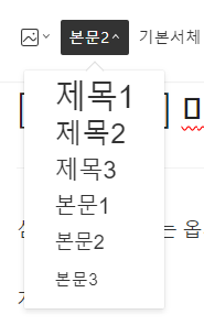 보통 텍스트 에디터의 경우 왼쪽의 사진처럼 제목 1부터 본문 3까지 되어있습니다. 제목으로 써져 있으면 검색어 노출이 더 잘 되기 때문에 제목을 쓸 일이 있으면 글자 크기가 아닌 저 제목 기능을 사용하는 것이 좋습니다. 마크다운에서 제목을 사용하려면 `#`을 붙이면 됩니다.