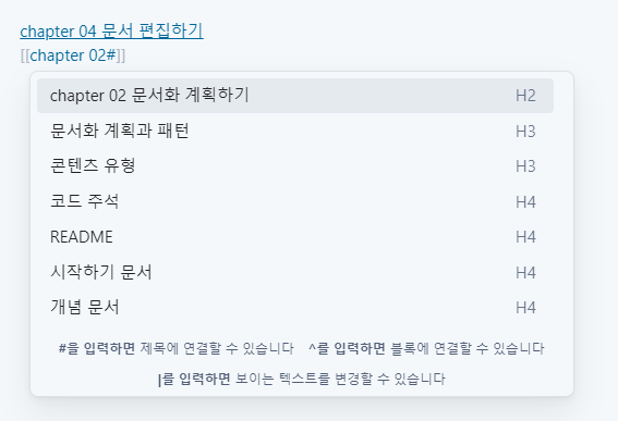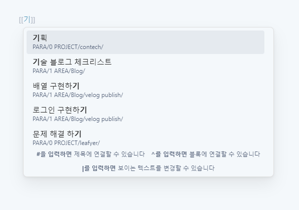 정말 간단하죠? 그리고 우클릭을 하지 않아도 `[[ ]]`대괄호들을 이렇게 만들어주면 바로 가능합니다.