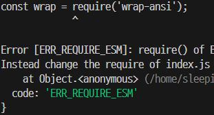 오류 메세지와 해당하는 코드입니다. 저 require을 로컬에서는 import로 바꿔서 쓸 수 있겠지만, 저는 github action에서 실행하고 싶었습니다. 그래서 집단지성의 힘을 빌려(질문하기) 문제를 해결했습니다!!