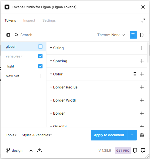 플러그인은 Tokens Studio for Figma로 하였습니다. 문서도 잘 나와있고, github뿐 아니라 다른 곳들도 연결할 수 있도록 발전했습니다. 개발과 관련한 패키지도 제공하고 있어서 디자인 토큰을 쉽게 가공할 수 있습니다.